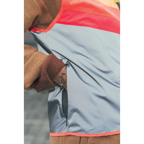 de lange achterzijde en zijzakje met blinde rits in de naad zijn extra handig tijdens het fietsen. schuif de dubbele rits naar het midden voor meer bewegingsvrijheid en extra comfort.