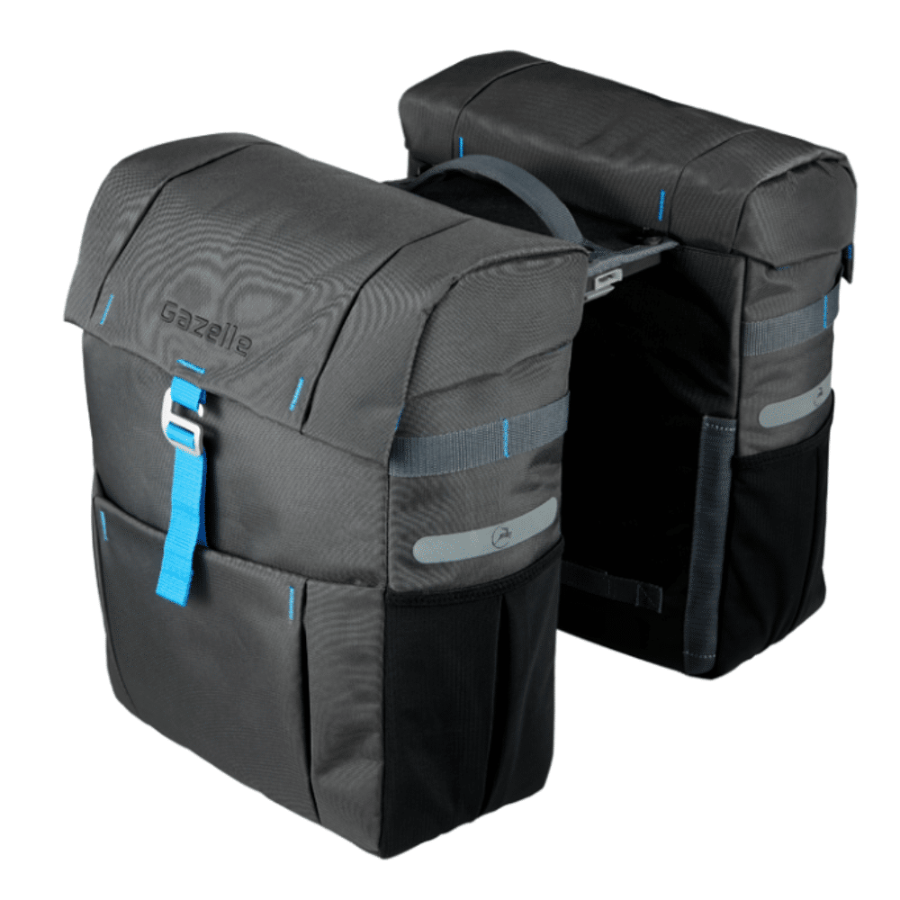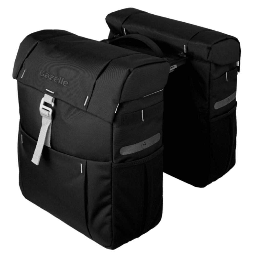 De Gazelle dubbele fietstas is de ideale tas voor recreatief en alledaags gebruik. Deze zeer stijlvolle tassen maken je Gazelle fiets compleet! De functionele tas van waterafstotend materiaal heeft een gezamenlijke inhoud van 37 liter, dat is dus ruim voldoende voor al je spullen. In onze dubbele fietstas blijven je spullen droog en beschermd tijdens een normale regenbui. En met de reflectie rondom de fietstas ga je extra veilig op pad.