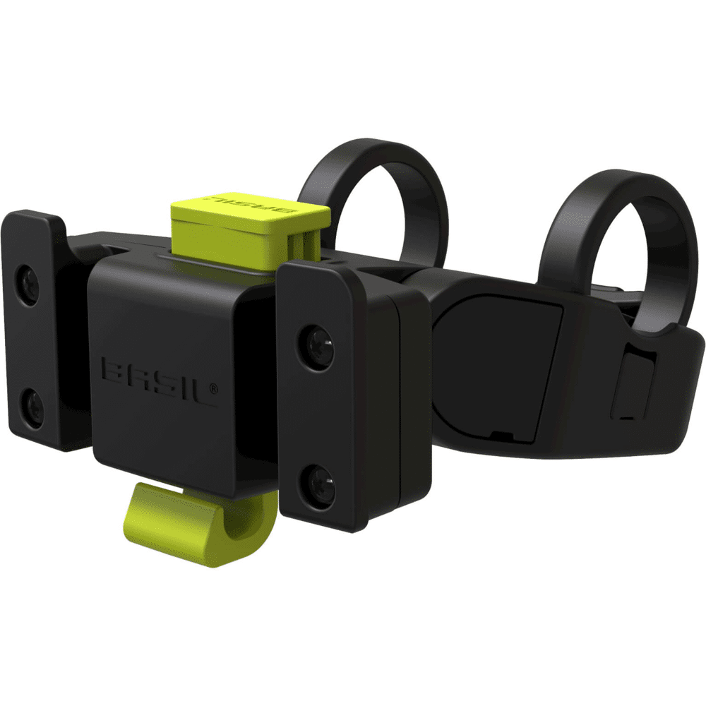 - De Basil KF Handlebar Holder is handig hulpmiddel voor het bevestigen van een afneembare fietsmand of stuurtas. Deze stuurbochthouder kun je combineren met fietsaccessoires die voorzien zijn van een Basil KF-adapterplaat of een Basil BasEasy/KF-adapterplaat. Het systeem bevestig je aan de stuurbocht van je fietsstuur. De houder past ook de meeste stadsfietsen, of dat nu dames- of herenfietsen zijn. Daarnaast is de stuurbochthouder ook geschikt voor E-bikes met bijvoorbeeld een Bosch display. Dankzij die meegeleverde verbredingselementen, monteer je de houder ook op stuurbochten waar een display op zit. De Basil KF Handlebar Holder is geschikt voor stuurbochten van 22-31.8 mm. De houder is gemaakt van kunststof en monteer je snel en eenvoudig. De hoek van de houder is verstelbaar en dankzij de montage zit de houder zeer stabiel. Eigenschappen: De Basil KF Handlebar Holder is verkrijgbaar in het zwart. De stuurbochthouder is geschikt voor KF adapterplaten. Ook te gebruiken in combinatie met E-bike displays (o.a. Bosch). De houder is zeer stabiel in verband met een extra borging.