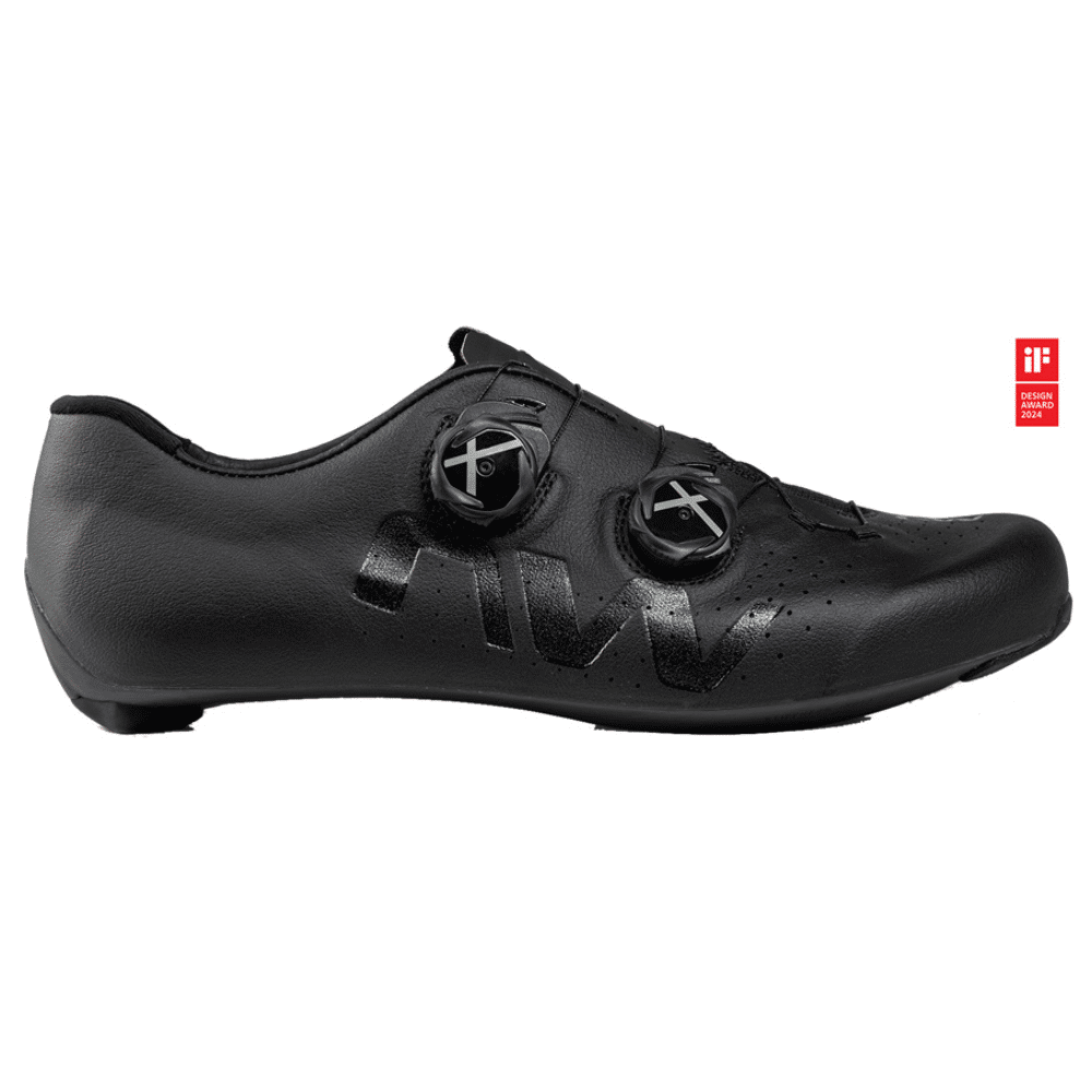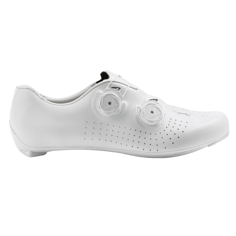 Gemaakt van 100% unidirectionele koolstof met een stijfheidsindex van 15, is de zool ontwikkeld om de vermogensoverdracht naar de pedalen te optimaliseren dankzij de exclusieve high tail-structuur en het gepatenteerde Powershape-systeem. De rubberen hielkussens zijn vervangbaar om de levensduur van je schoenen te verlengen. Grotere ventilatieopeningen maximaliseren de luchtstroom in en uit.
