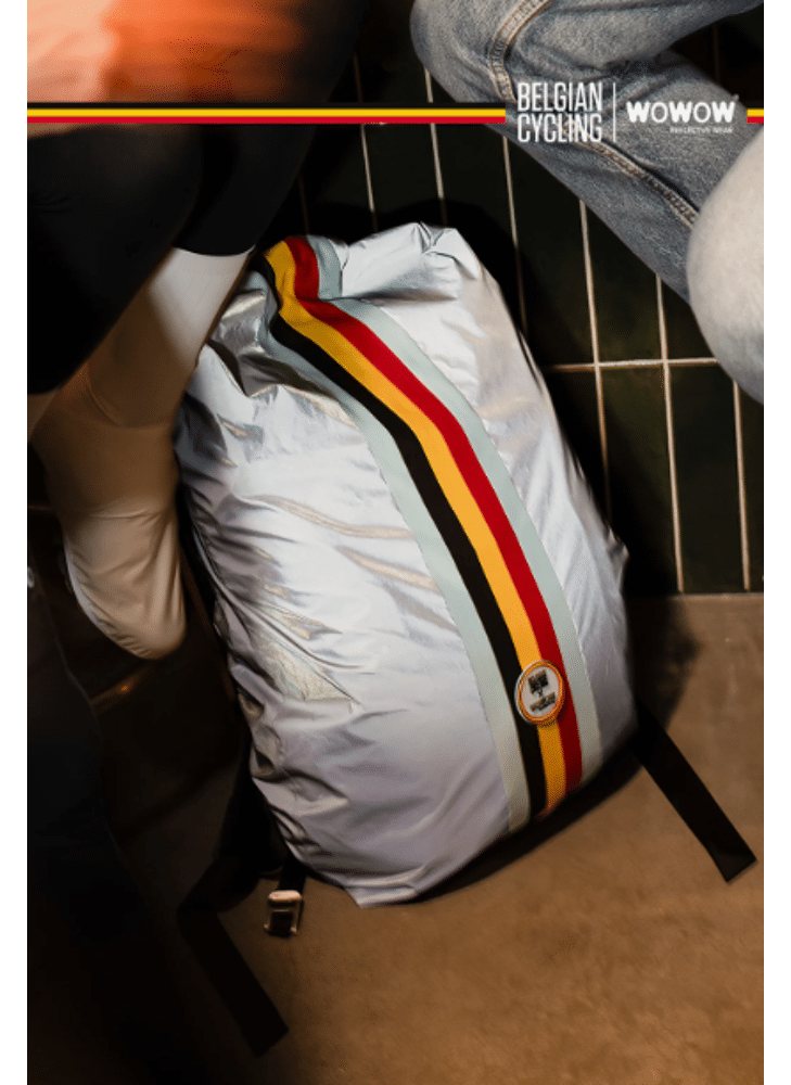 De Belgische Cycling Bag Cover FR is ontworpen om je zichtbaarheid te maximaliseren, vooral tijdens nachtelijke of weinig lichtomstandigheden. Gemaakt van volledig reflectief bekleding, zorgt deze hoes ervoor dat je vanuit alle hoeken goed zichtbaar blijft, waardoor je veilig blijft in drukke stedelijke omgevingen.
