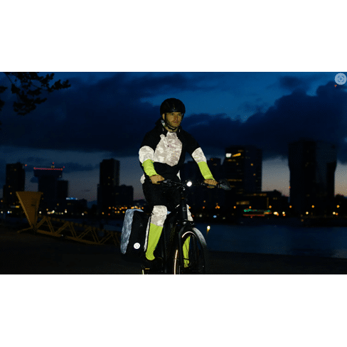Onze Tech collectie biedt de ultieme regenjas voor snelle commuters die elke dag weer op de fiets stappen, weer of geen weer, en daarom de hoogste kwaliteit van hun uitrusting verwachten. Het moderne ontwerp, met magnetische asymmetrische flap, combineert perfect met de moderne, duurzame waterdichte technologie. De mouwen zijn verlengd om je handen te beschermen, en met Hi-vis en reflectieve elementen ben je zowel overdag als in het donker goed zichtbaar. Dankzij de met veel kennis ontworpen modieuze pasvorm en hoog ademend vermogen is deze stijlvolle jas ook naast de fiets zeer op zijn plaats in elke omgeving.