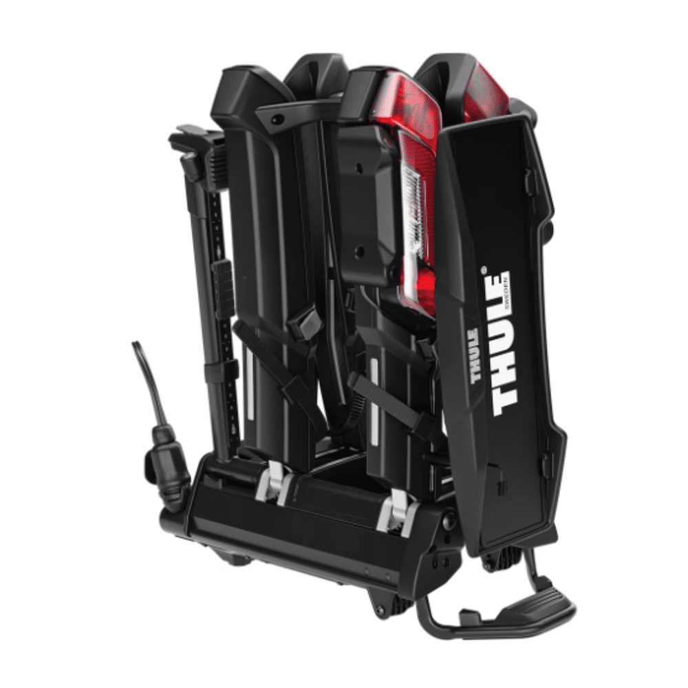 Met royale ruimte, hoog laadvermogen en ondersteuning voor lange wielbasissen zorgt Thule Epos ParkSecure ervoor dat je fietsen veilig reizen. Volledig opvouwbaar voor eenvoudig opbergen en kantelbaar voor eenvoudige toegang tot de koffer - zelfs met fietsen gemonteerd.