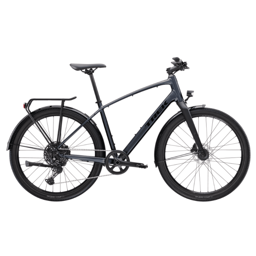 Heb je vragen over dit product of krijg je graag nog wat advies voor je besteld. Stel hier je vraag.De Dual Sport 3 is een hoogwaardige allround hybride fiets die net zo thuis is op verharde wegen als op ruwer terrein. Hij heeft een licht frame, een 1x Shimano CUES-aandrijving met groot bereik en er zitten talloze rijklare accessoires op. De brede Bontrager Kovee wielen en brede gravelbanden dempen hobbels en zwaar terrein, zodat je met comfort en vertrouwen over verharde wegen, grindpaden en lichte trails rijdt.